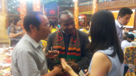 8月2日晚,我公司銘澤機(jī)械董事長李新生與各位代表在王爺府--白家大院歡迎贊比亞共和國前副總統(tǒng)盧潘多.姆瓦佩,宴會期間與贊比亞共和國前副總統(tǒng)盧潘多.姆瓦佩、杰出華商協(xié)會主席盧俊卿、執(zhí)行主席韓薇進(jìn)行親切交談。
